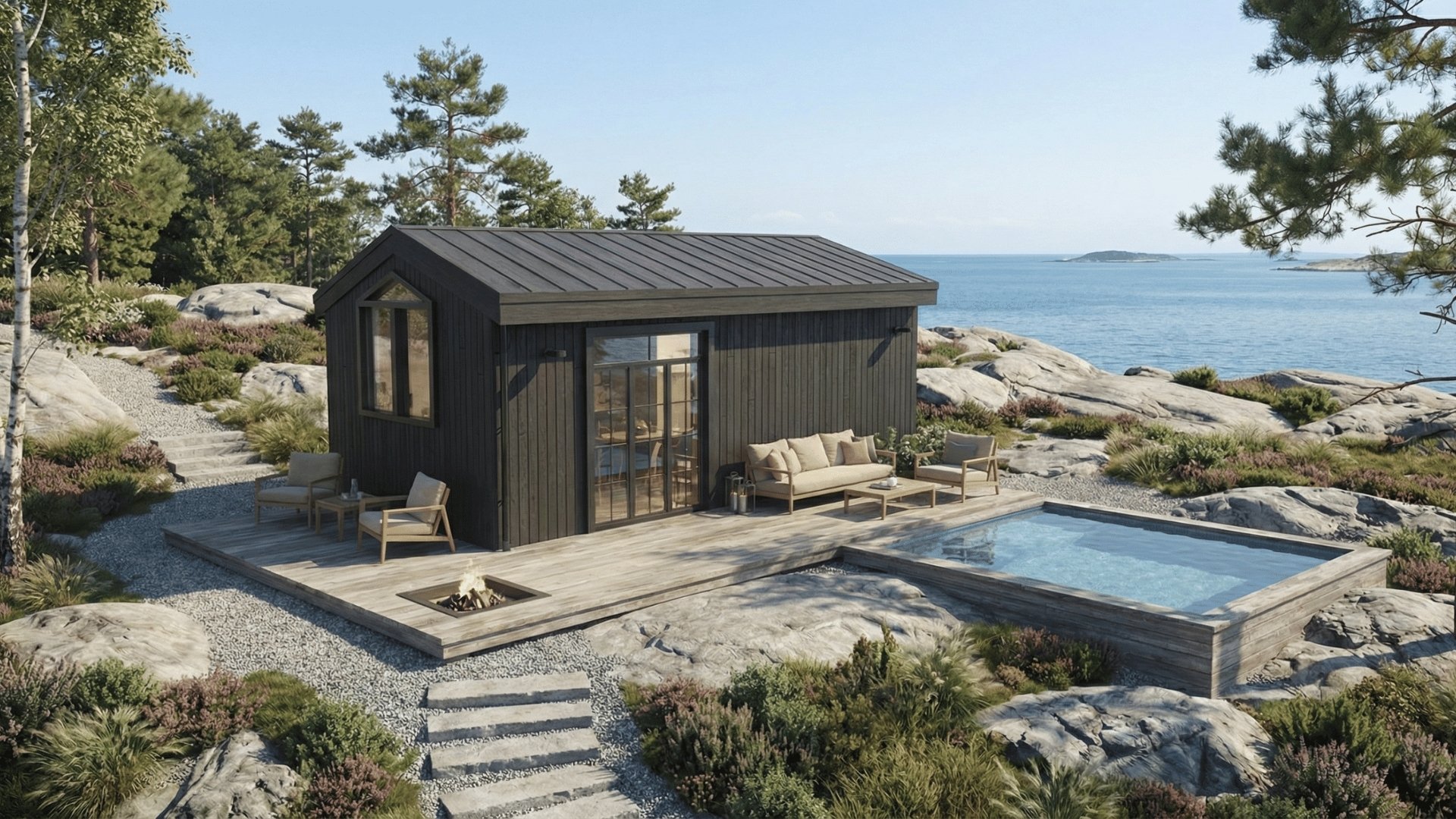 Väderbeständig huskropp i året runt utförande tillverkad i fabrik,levererad och installerad med möjlighet för dig som kund att skräddarsy och anpassa huset efter egna behov och i egen takt. Skräddarsy och anpassa med husbyggaren online.