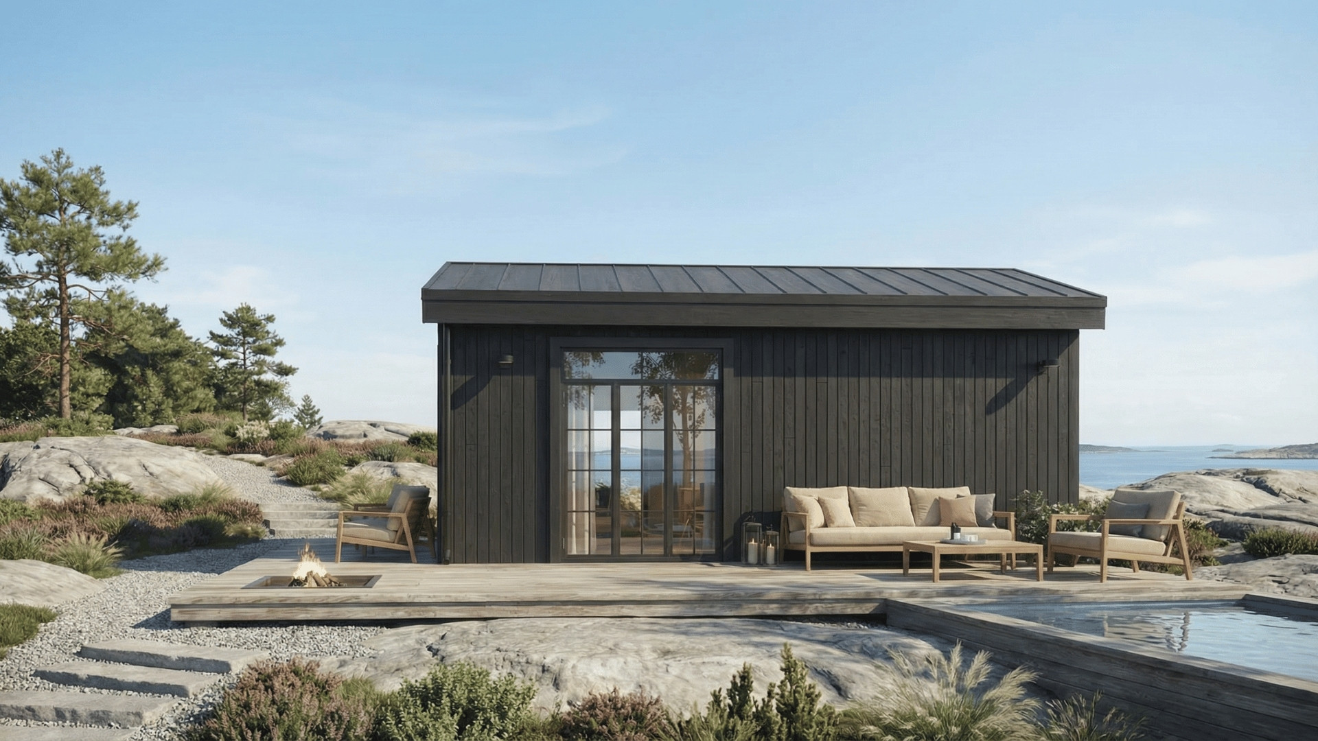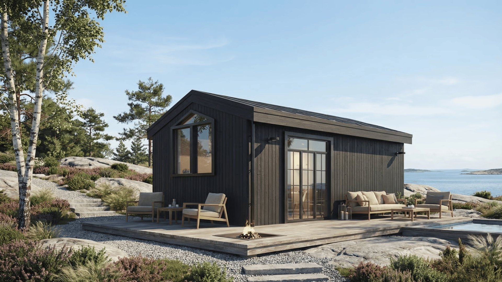 Attefallshuset Victorias styrka ligger i dess smarta planlösning, som tar tillvara varje kvadratmeter och skapar en harmonisk atmosfär. Med sitt klassiska brutna tak och spröjsade fönster fångar huset ljuset på ett sätt som ger en varm och inbjudande känsla.